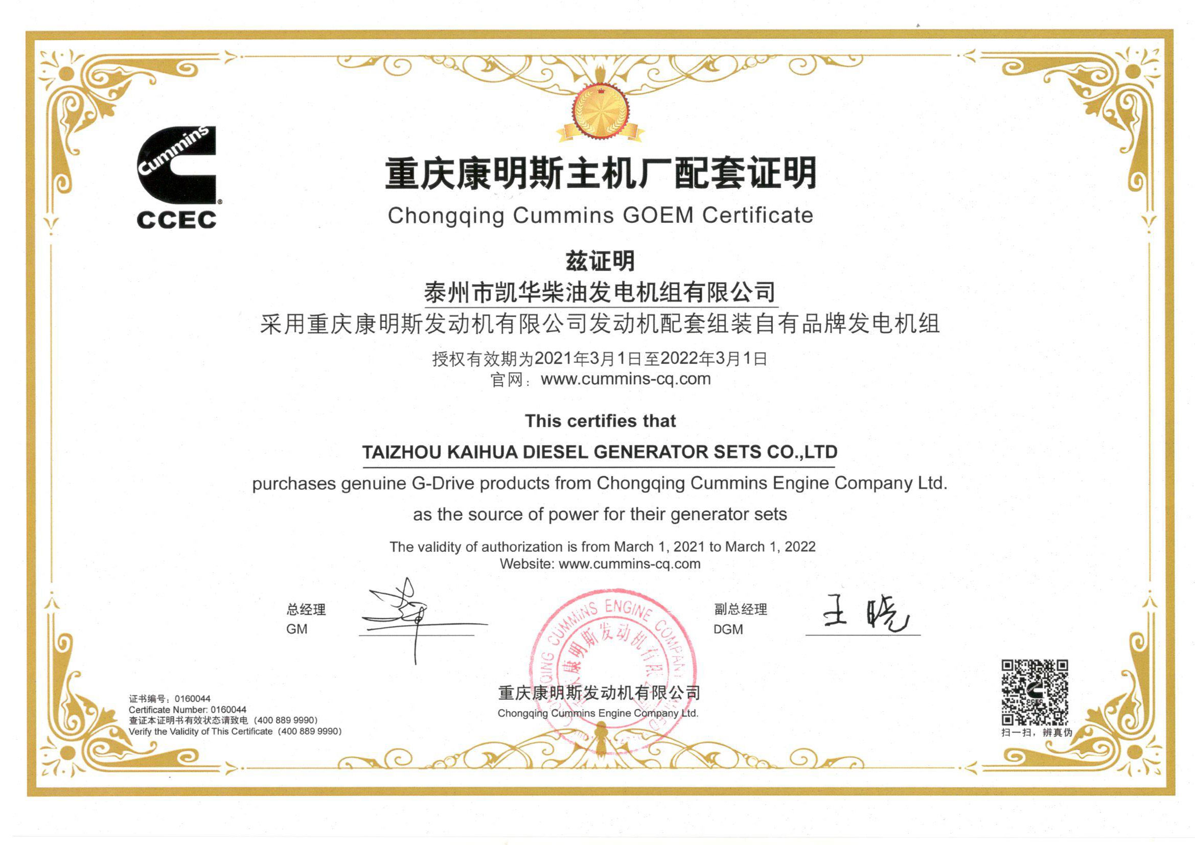 泰州市凱華柴油發(fā)電機組有限公司創(chuàng)建于2003年,是一家集柴油發(fā)電機組燃氣發(fā)電機組的研發(fā)、生產(chǎn)、銷售為一體的高新技術(shù)民營企業(yè),公司座落于“漢唐古郡,淮海名區(qū)”,具有“鳳凰城”美稱的祥泰之州——江蘇省泰州市,地處中國經(jīng)濟最發(fā)達的長三角經(jīng)濟圈,水陸空立體交通,地理位置十分優(yōu)越。公司目前注冊資本金11800萬元人民幣,生產(chǎn)基地占地六十畝,現(xiàn)有各類高素質(zhì)員工一百多名,專業(yè)技術(shù)人員達46人,其中高級技術(shù)人員16人,年銷售額近6億元。