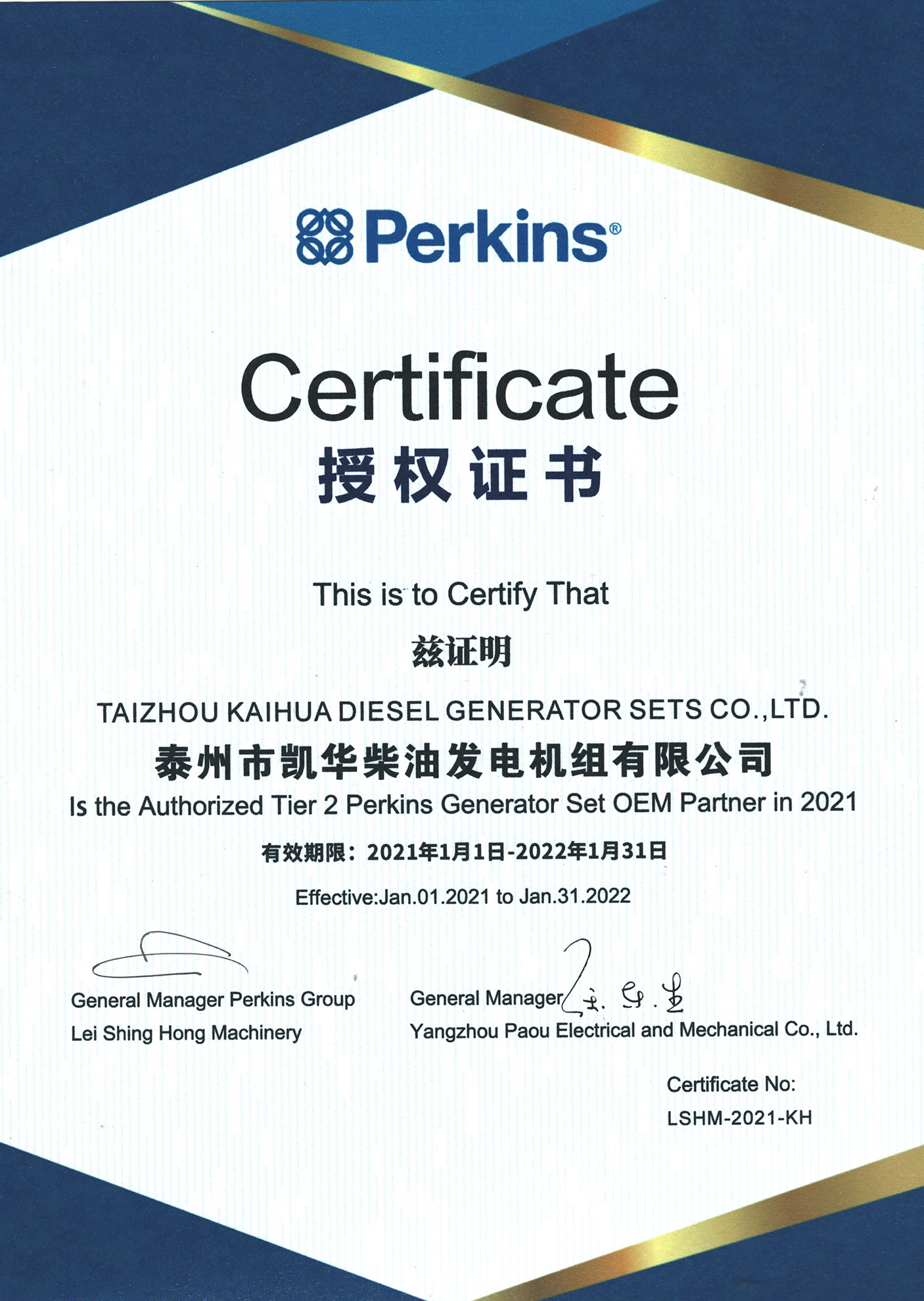 帕金期發(fā)電機組
